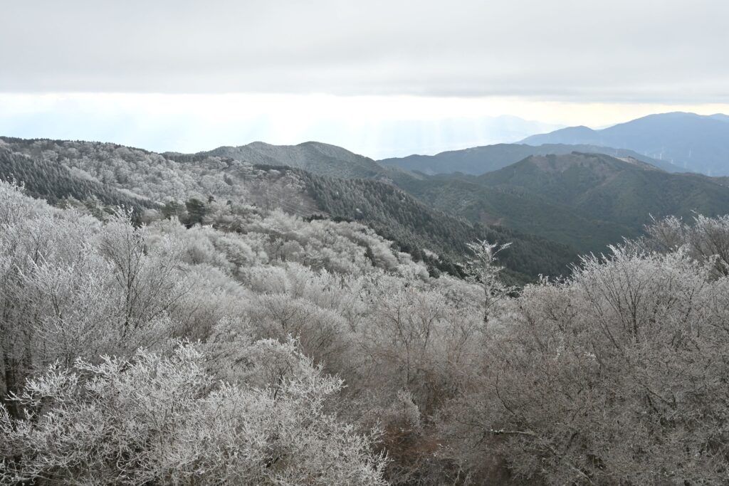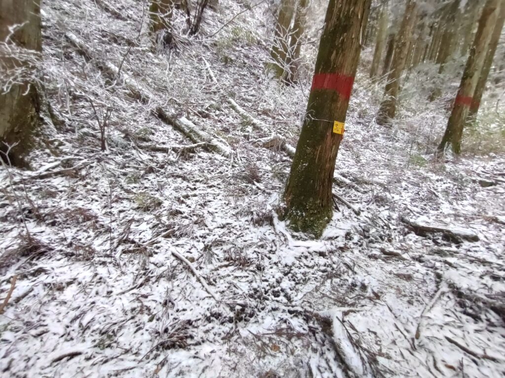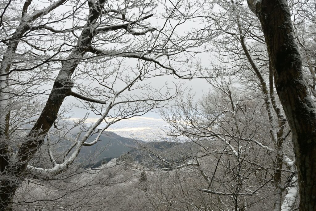 前日の2日に麓から見た金剛山が真っ白だったので雪山を期待したのですが、行ってみると積もっているのは木の上が中心でフカフカの雪山歩きというには程遠く、軽アイゼンの爪が地面にカツカツと当たる感じでした。