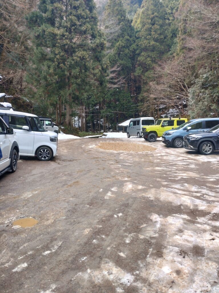 真ん中に池のような水たまりがあって、皆さんそれを避けて駐車されるので普段より停められる台数に限りがあったようですが、何とか最後の一台で停めることができました。
