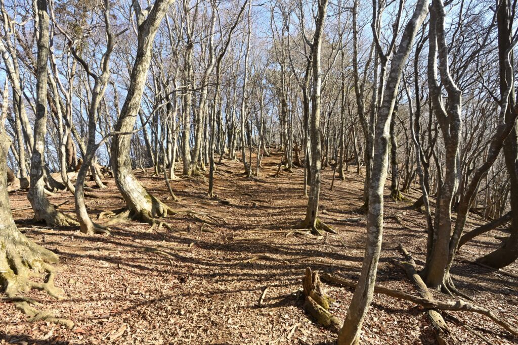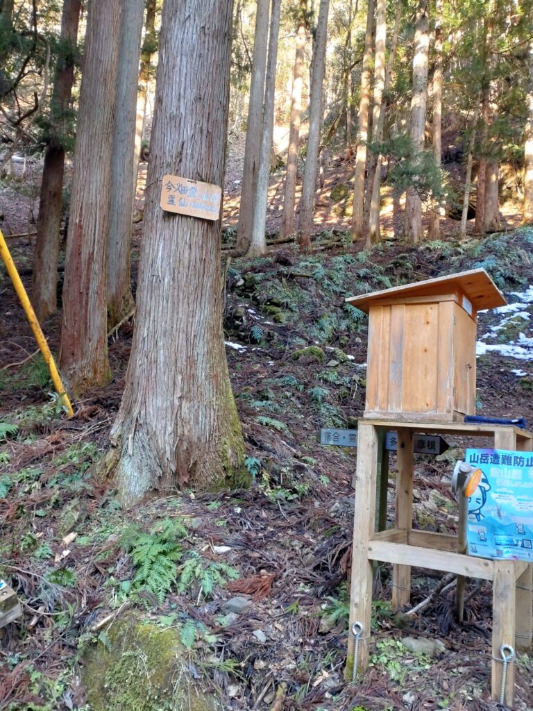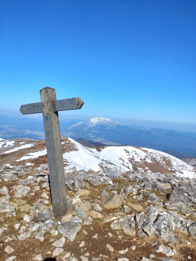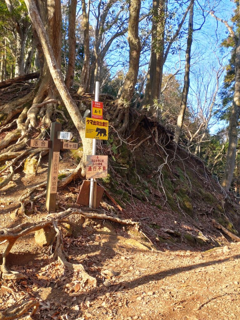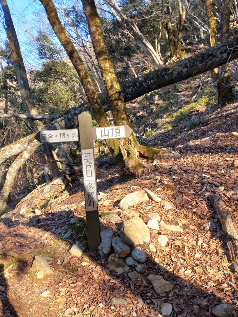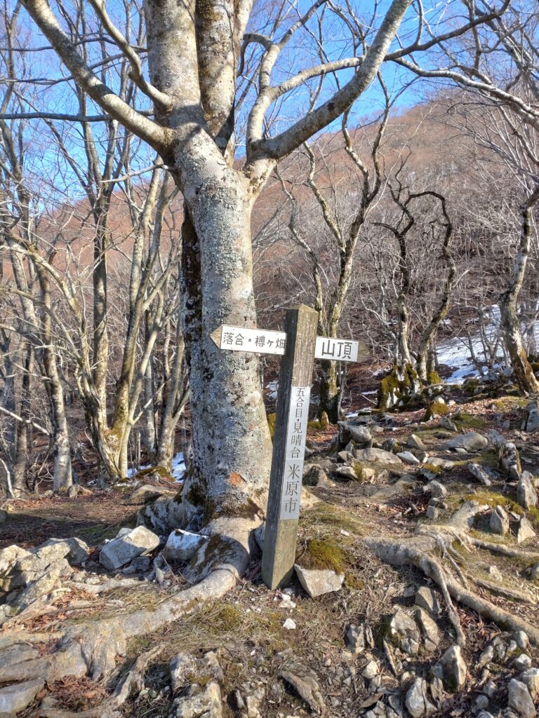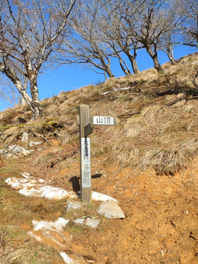 今回のルートは落合集落から林道を登って汗拭き峠方面を経由して山頂へ至り、帰路は今畑登山口に降ってくるループコースとしたのですが、山頂から今畑(現在は廃村)方面への降り、特に笹峠までが急降で岩混じりのガレ場になっていることもあり雪が付いている状況なら逆コースが良いのではないかと思いました。ただし、この日は往路の汗拭き峠上の6合目付近からドロドロで滑りまくって登るのに苦労したので、ここを降ったら滑って転倒し、泥だらけになるのは確実なので結果的にはこのコースで良かったと思いました。