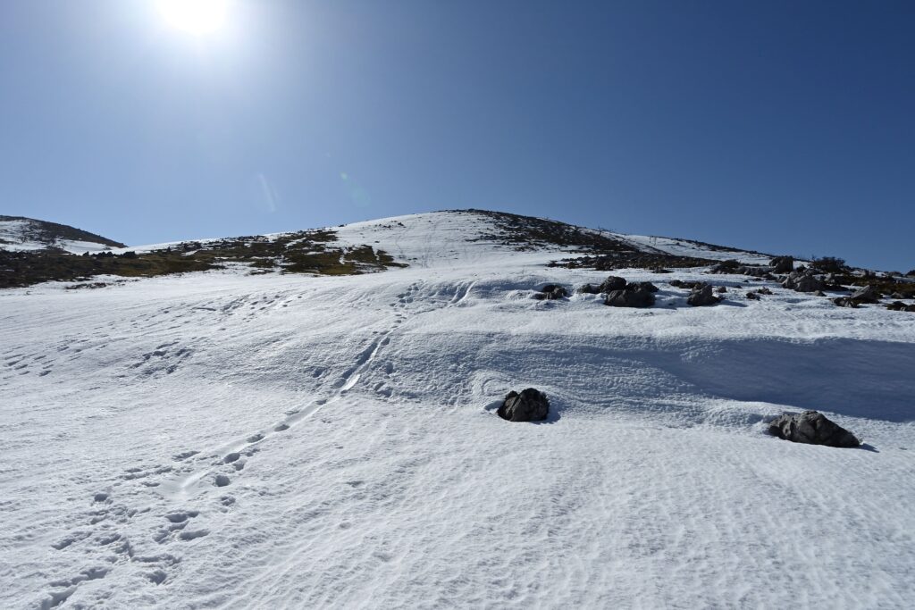 急登を登りきると山頂直下の積雪地帯になっていました。