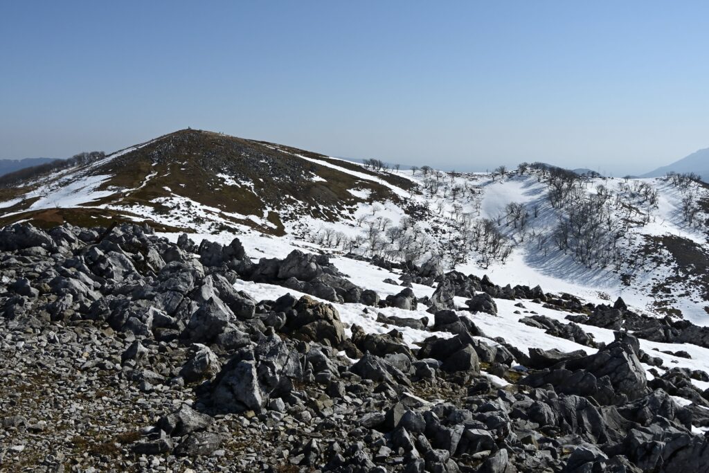 実際の山頂は、このピークの向こう側で左側が最高点(霊仙山は山頂が最高地点ではないようです)