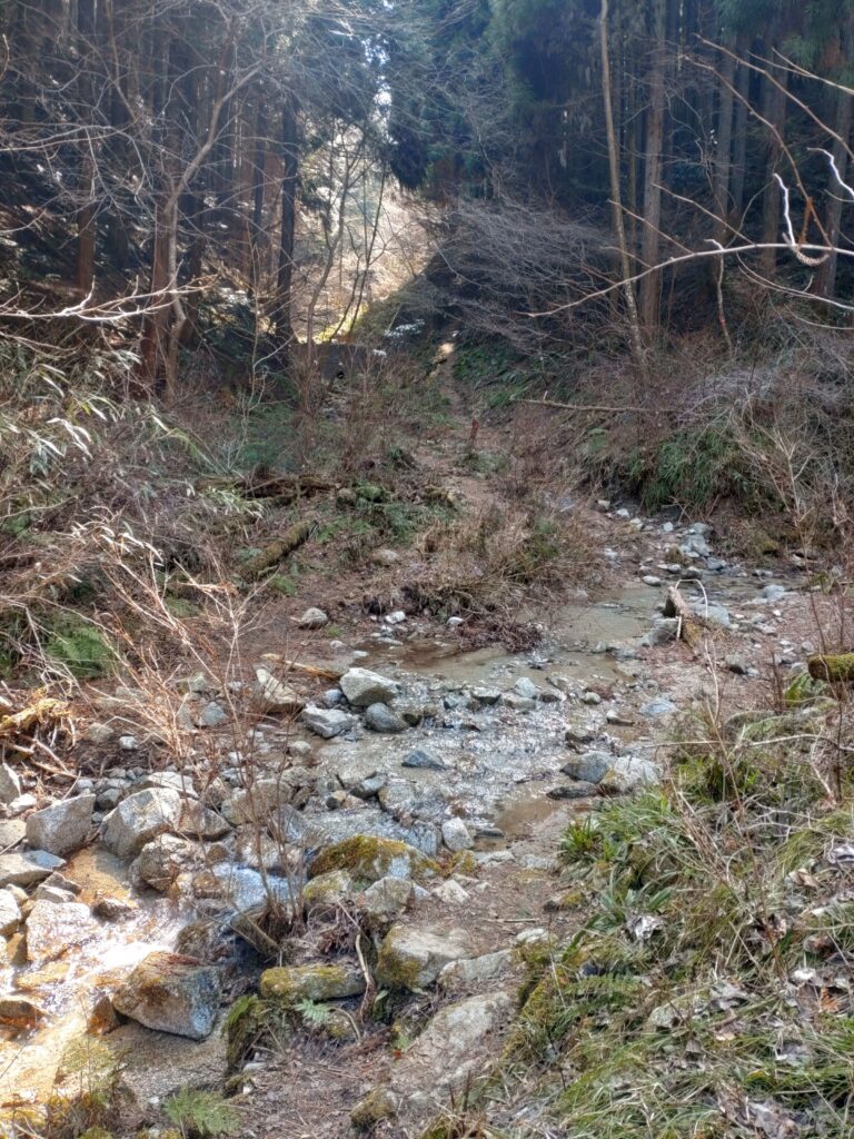 谷はほとんど枯れていますが、所々水がありました