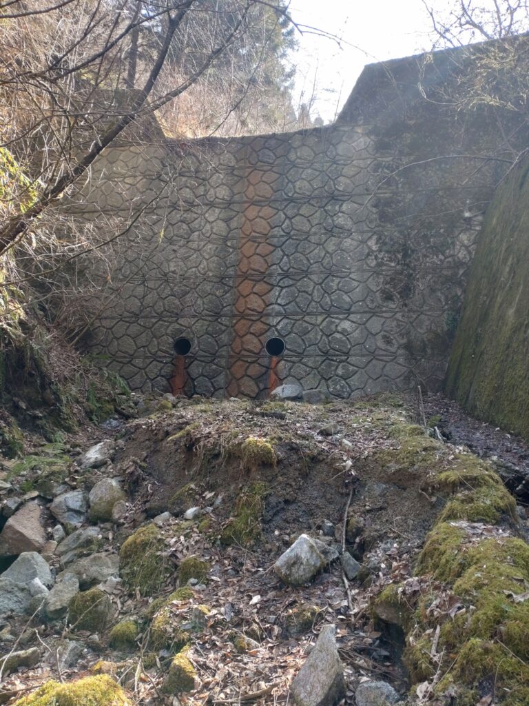 谷の中ほどで立ちはだかる堰堤。