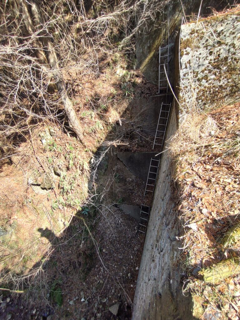 堰堤の上から見た4連梯子。