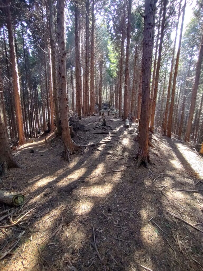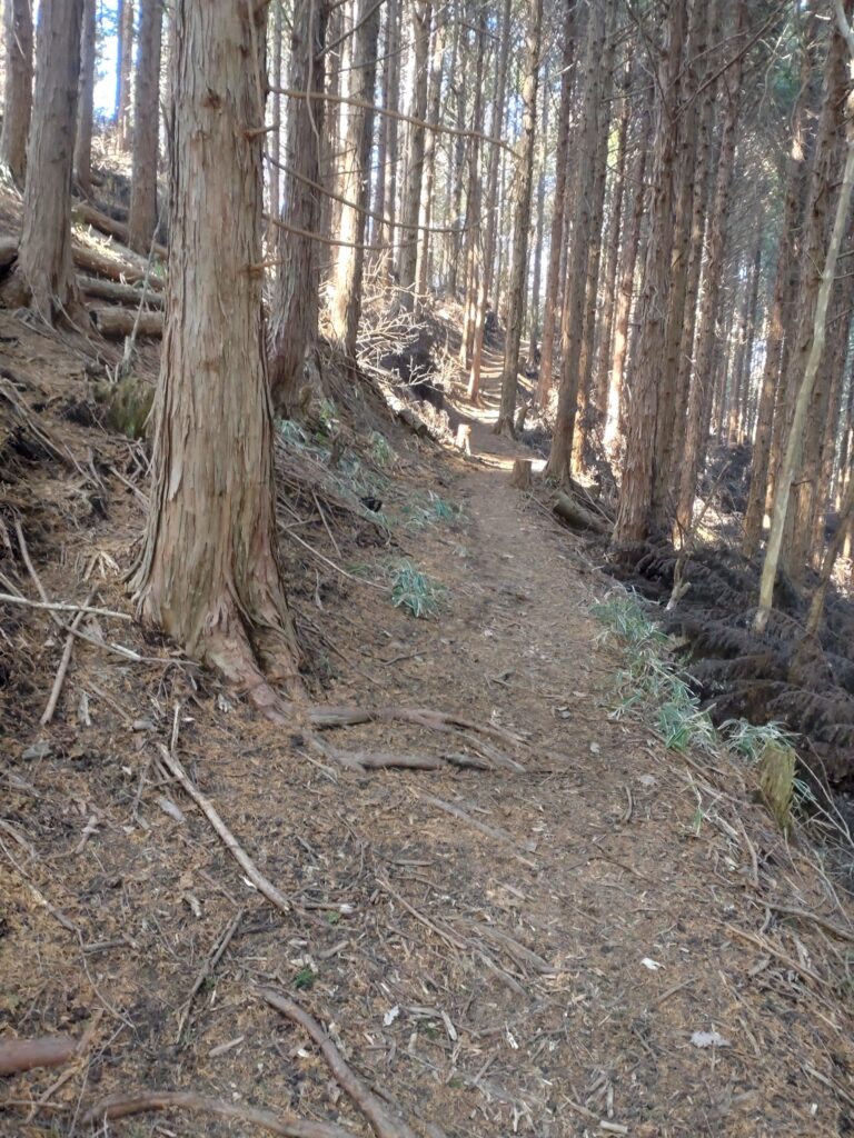 真ん中を行くとダイトレに合流。右はもみじ谷から上がってくる道と合流して一の鳥居に出ます。今回は右へ…
